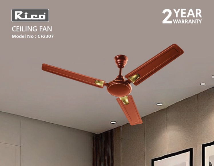The Rico CF2307 Ceiling Fan is engineered for better airflow, silent cooling, and energy efficiency. With a sweep size of 1200 mm and reinforced half-aluminium blades, this fan delivers high air delivery with wide blades and twist angles. Its 100% rust-free aluminium construction ensures durability, while the double ball bearing system guarantees smooth, long-lasting operation.