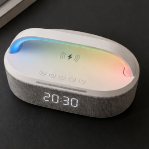 - ✔️ 4-in-1 functionality – Speaker + Wireless Charger + Clock + Alarm