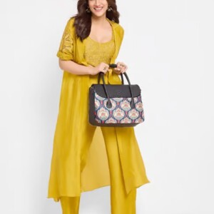 Made with high-quality vegan leather and handcrafted fabric, this satchel reflects timeless elegance while supporting sustainable choices. The intricate prints add a unique artistic charm, while the structured silhouette ensures a polished and professional look. The water-resistant lining protects your essentials, making it reliable in all conditions.